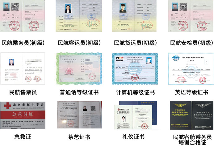 可根據(jù)所學(xué)專業(yè),參加相關(guān)部門(mén)或行業(yè)組織的考試,成績(jī)合格,可取得相應(yīng)的職業(yè)資格證書(shū)。如:公共英語(yǔ)三級(jí)、普通話等級(jí)證書(shū)、安檢證書(shū)、民航客運(yùn)證書(shū)、急救證、禮儀證書(shū)、茶藝證書(shū)、民航客艙乘務(wù)員培訓(xùn)合格證等。