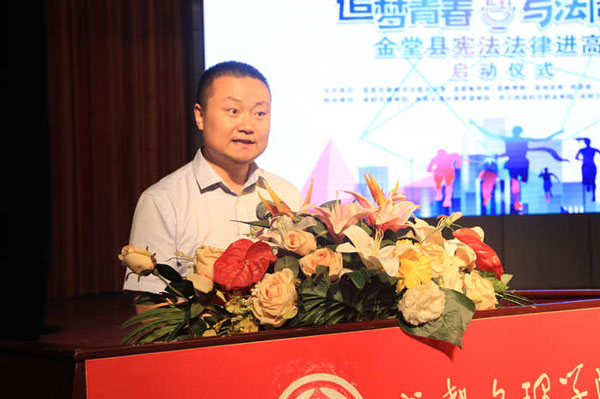 為全面貫徹落實(shí)中央和省委、市委關(guān)于加強(qiáng)憲法法律學(xué)習(xí)宣傳教育的安排部署,推動(dòng)在蓉高校憲法法律學(xué)習(xí)宣傳教育活動(dòng)深入開展,大力推進(jìn)“憲法法律進(jìn)高?!被顒?dòng)。4月25日上午10時(shí)30分,在我校星空劇場(chǎng)舉辦了以“追夢(mèng)青春·與法同行”為主題的金堂縣“憲法法律進(jìn)高?!被顒?dòng)啟動(dòng)儀式。