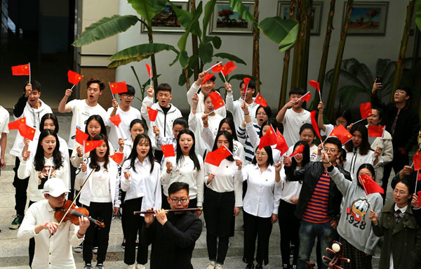 年輕的學(xué)子們把心中對(duì)祖國(guó)的熱愛(ài)與祝福都化作了同一首歌。人文學(xué)院學(xué)生馬旺對(duì)記者說(shuō),“當(dāng)歌聲響起的時(shí)候,大家所有的熱情都是因?yàn)橛形覀冞@個(gè)祖國(guó)。愛(ài)國(guó)的話我們都聽(tīng)過(guò)很多,作為新時(shí)代的青年,我們應(yīng)該對(duì)此有自己的解讀,就是有所追求,同時(shí)有所堅(jiān)守?!?