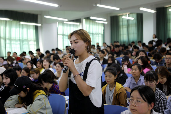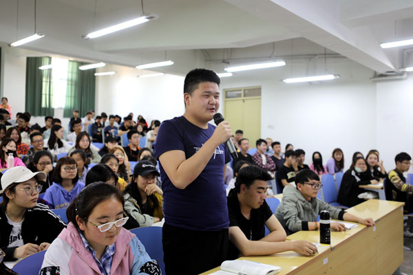 4月18日下午,學(xué)校黨委書記郭書印在A5階一北教室為2017級近300名學(xué)生講授以“高等教育改革發(fā)展趨勢”為主題的專題講座,幫助同學(xué)們了解本科教育的戰(zhàn)略地位、改革發(fā)展的趨勢和具體舉措。