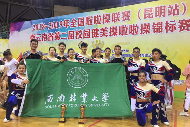 2018-2019年全國(guó)啦啦操聯(lián)賽(云南站)暨云南省第二屆校園健美操啦啦操錦標(biāo)賽于11月9–11日在云南師范大學(xué)飛碟體育館進(jìn)行,我校健美操隊(duì)參加了此次比賽體育院校組的比賽,經(jīng)過(guò)兩天的角逐,我校健美操隊(duì)獲得兩個(gè)健美操項(xiàng)目冠軍、一個(gè)啦啦操項(xiàng)目第四名的優(yōu)異成績(jī),為學(xué)校取得了榮譽(yù)。同時(shí)教練員趙化斌老師獲得“優(yōu)秀教練員”的榮譽(yù)稱(chēng)號(hào)。