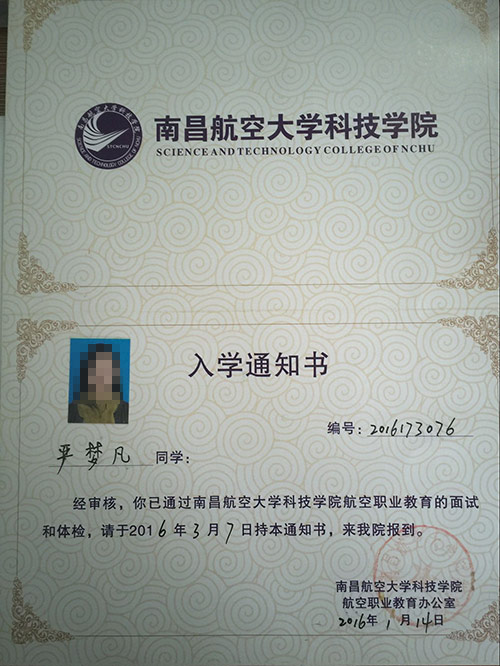 恭喜嚴(yán)夢(mèng)凡同學(xué)被我校錄取【南航航空】