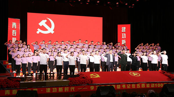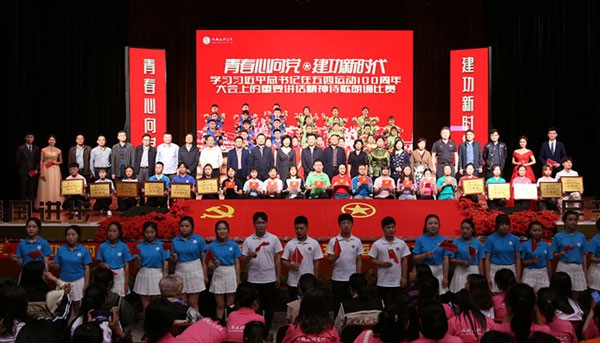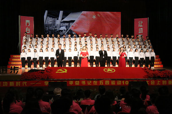 為貫徹落實(shí)共青團(tuán)中央(中青發(fā)[2019]7號(hào))文件《共青團(tuán)中央關(guān)于認(rèn)真學(xué)習(xí)宣傳貫徹習(xí)近平總書記在紀(jì)念五四運(yùn)動(dòng)100周年大會(huì)上重要講話精神的通知》的要求,我校于5月9日晚7時(shí),在星空劇場(chǎng)隆重舉行“青春心向黨·建功新時(shí)代”學(xué)習(xí)習(xí)近平總書記在五四運(yùn)動(dòng)100周年大會(huì)上的重要講話精神詩(shī)歌朗誦比賽。我校董事長(zhǎng)劉學(xué)民,校長(zhǎng)唐小林,黨委書記高華錦等領(lǐng)導(dǎo)出席,各二級(jí)學(xué)院院長(zhǎng)、黨總支書記以及千余名師生共襄盛舉。