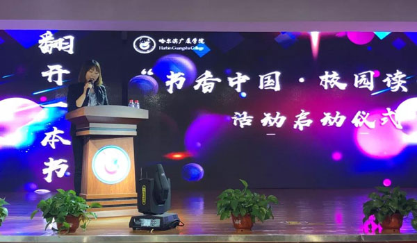 隨后,副校長韓毓?jié)嵭x了關于舉辦哈爾濱廣廈學院“書香中國·校園讀書月”活動的文件,對讀書月的系列活動進行了詳細的闡述。讀書月活動時間為期一個月,活動內容具體有:榜樣評選之“十佳讀者”、紙質閱讀一小時挑戰(zhàn)賽、專題講座、征文活動、“隨手拍最美讀書場景”活動、讀書館和讀者見面會、讀書分享會等。