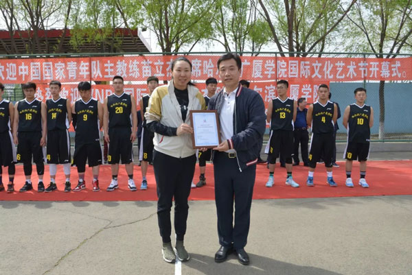 5月10日,中國國家青年隊主教練、中國人民解放軍八一青年隊主教練、前國家女籃隊長、2008奧運會得分王苗立杰走進哈爾濱廣廈學(xué)院,指導(dǎo)哈爾濱廣廈學(xué)院籃球隊,助力哈爾濱廣廈學(xué)院國際文化藝術(shù)節(jié)開幕式。
