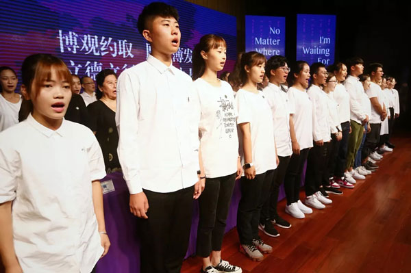 典禮上,新生代表依次上臺接受嘉華學(xué)院老師授予的?;?,并將校徽佩戴在胸前?!安┯^約取,厚積薄發(fā);立德立行,達(dá)己達(dá)人?!币宦暵曅S?xùn)和嘉華精神鏗鏘有力,擲地有聲!相信2018級新生將把它銘記在心中,用行動(dòng)踐行校訓(xùn)。
