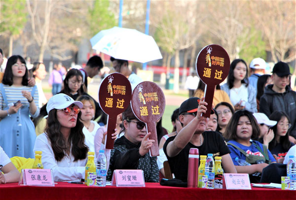 為營造我校國際教育文化氛圍,加強高端化、國際化、個性化辦學(xué)理念,豐富校園文化生活,4月17日下午,由國際教育學(xué)院、經(jīng)濟(jì)與管理學(xué)院聯(lián)合全國知名音樂評說節(jié)目《中國好聲音》寧夏組委會舉辦的學(xué)校第四屆國際文化藝術(shù)節(jié)系列活動之“音你唱響 樂動語言”校園歌手大賽初賽暨《中國好聲音》中礦大銀川學(xué)院海選專場選拔賽在學(xué)校運動場隆重舉行。國家一級演員、寧夏著名女高音歌唱家趙云臺、寧夏演出行業(yè)協(xié)會常務(wù)副會長、寧夏音協(xié)流行音樂學(xué)會秘書長孫繼東、《中國好聲音》寧夏賽區(qū)組委會會長、寧夏華宇星空文化傳媒有限公司董事長劉蜜珊為海選評委出席。同時到場的嘉賓有招商銀行銀川興慶府支行行長張濤、學(xué)校國際教育學(xué)院院長張康龍、宣傳部副部長張弘德、經(jīng)濟(jì)與管理學(xué)院黨總支書記、副院長楊欣欣及各學(xué)院團(tuán)總支書記、老師、學(xué)生近一千人共同觀看本場比賽。
