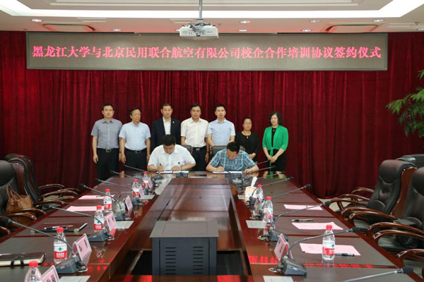 簽約儀式上,與會(huì)雙方共同觀看了黑龍江大學(xué)與北京民用聯(lián)合航空有限公司的宣傳片,詳細(xì)了解了黑龍江大學(xué)、北京民用聯(lián)合航空有限公司的發(fā)展歷程、基本情況和戰(zhàn)略目標(biāo)。