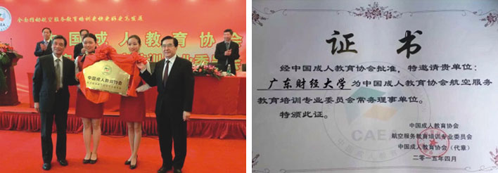 為貫徹《國務(wù)院關(guān)于加快發(fā)展現(xiàn)代職業(yè)教育的決定》、《國務(wù)院辦公廳關(guān)于深化產(chǎn)教融合的若干意見》、《職業(yè)學(xué)校校企合作促進(jìn)辦法》、《職業(yè)教育與繼續(xù)教育工作要點(diǎn)》等文件精神,大力推動(dòng)職業(yè)教育快速健康持續(xù)發(fā)展,滿足航空業(yè)快速發(fā)展對人才的需求。廣東財(cái)經(jīng)大學(xué)繼續(xù)教育學(xué)院與北京中航未來科技集團(tuán)有限公司攜手開展航空服務(wù)職業(yè)教育校企合作,通過主動(dòng)適應(yīng)國內(nèi)外民航業(yè)的快速發(fā)展和相關(guān)人才的全面發(fā)展需求,結(jié)合學(xué)校辦學(xué)優(yōu)勢和企業(yè)先進(jìn)的人才培養(yǎng)模式,強(qiáng)調(diào)培養(yǎng)體系的針對性和實(shí)效性,采用“職業(yè)技能培養(yǎng)+實(shí)訓(xùn)實(shí)習(xí)”相結(jié)合的培養(yǎng)模式,實(shí)行“2+1”教學(xué)模式,即前兩年在廣東財(cái)經(jīng)大學(xué)繼續(xù)教育學(xué)院學(xué)習(xí)專業(yè)理論課程;最后一年到中航未來航空實(shí)訓(xùn)基地進(jìn)行實(shí)訓(xùn),以學(xué)員就業(yè)為導(dǎo)向、技能培養(yǎng)為主導(dǎo),致力于培養(yǎng)文化素質(zhì)和語言能力更強(qiáng)、專業(yè)技能更高的現(xiàn)代民航服務(wù)人才。