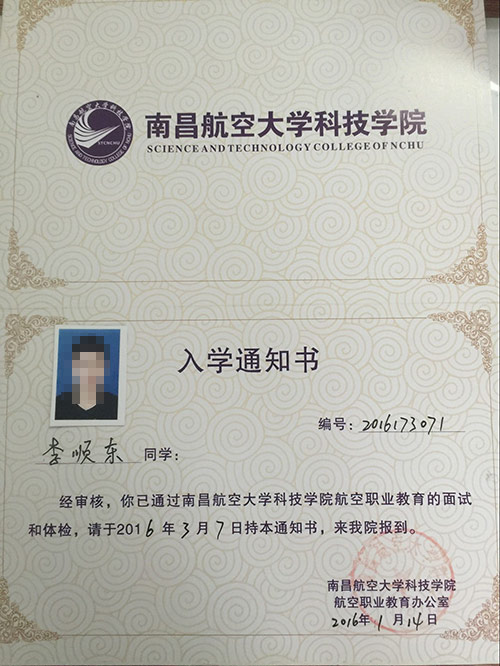 恭喜李順東同學(xué)被我校錄取【南航航空】