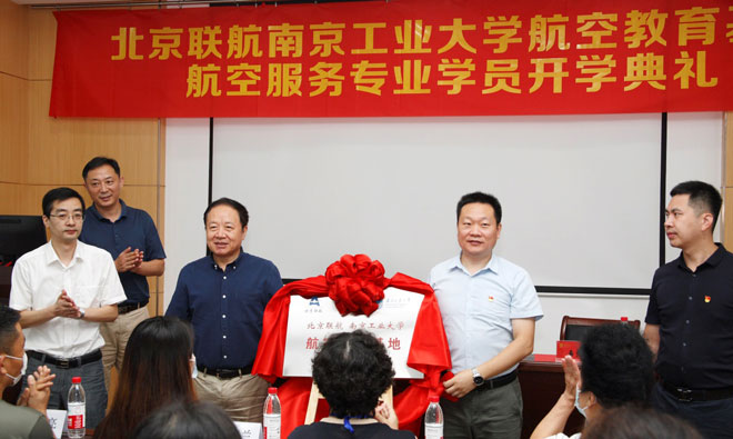 2020年8月30日,北京聯(lián)航南京工業(yè)大學(xué)航空教育基地揭牌暨開班典禮在南京工業(yè)大學(xué)舉行。南京工業(yè)大學(xué)副校長(zhǎng)李世收、北京民用聯(lián)合航空有限公司副總經(jīng)理馬少紅、南京工業(yè)大學(xué)繼續(xù)教育學(xué)院院長(zhǎng)方建強(qiáng)、北京民用聯(lián)合航空有限公司培訓(xùn)部主任徐磊等領(lǐng)導(dǎo)出席會(huì)議。首屆招生的59名航空服務(wù)專業(yè)學(xué)員及北聯(lián)航的工作人員參加了揭牌儀式并舉行了開班典禮。揭牌儀式和開班典禮由南京工業(yè)大學(xué)繼續(xù)教育學(xué)院副院長(zhǎng)劉建東全程主持。